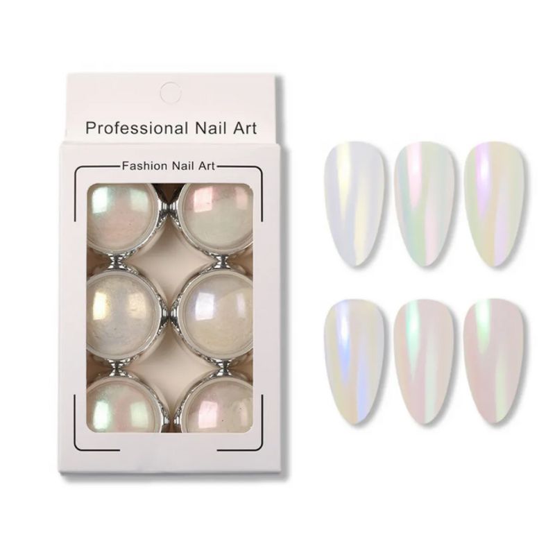 Το σετ Fairy Aurora Διακοσμητικές Σκόνες Νυχιών περιλαμβάνει 6 ιριδίζουσες σκόνες που χαρίζουν ονειρικό, φωτεινό εφέ τύπου aurora/unicorn, με αποχρώσεις που αλλάζουν ανάλογα με το φως. Ιδανικές για χρήση με ημιμόνιμο, gel ή acrygel, εφαρμόζονται εύκολα πάνω από no-wipe top coat και δημιουργούν μοναδικά mirror, opal ή mermaid φινιρίσματα. Κατάλληλες για φυσικά ή τεχνητά νύχια, είναι ιδανικές για εντυπωσιακά nail art
