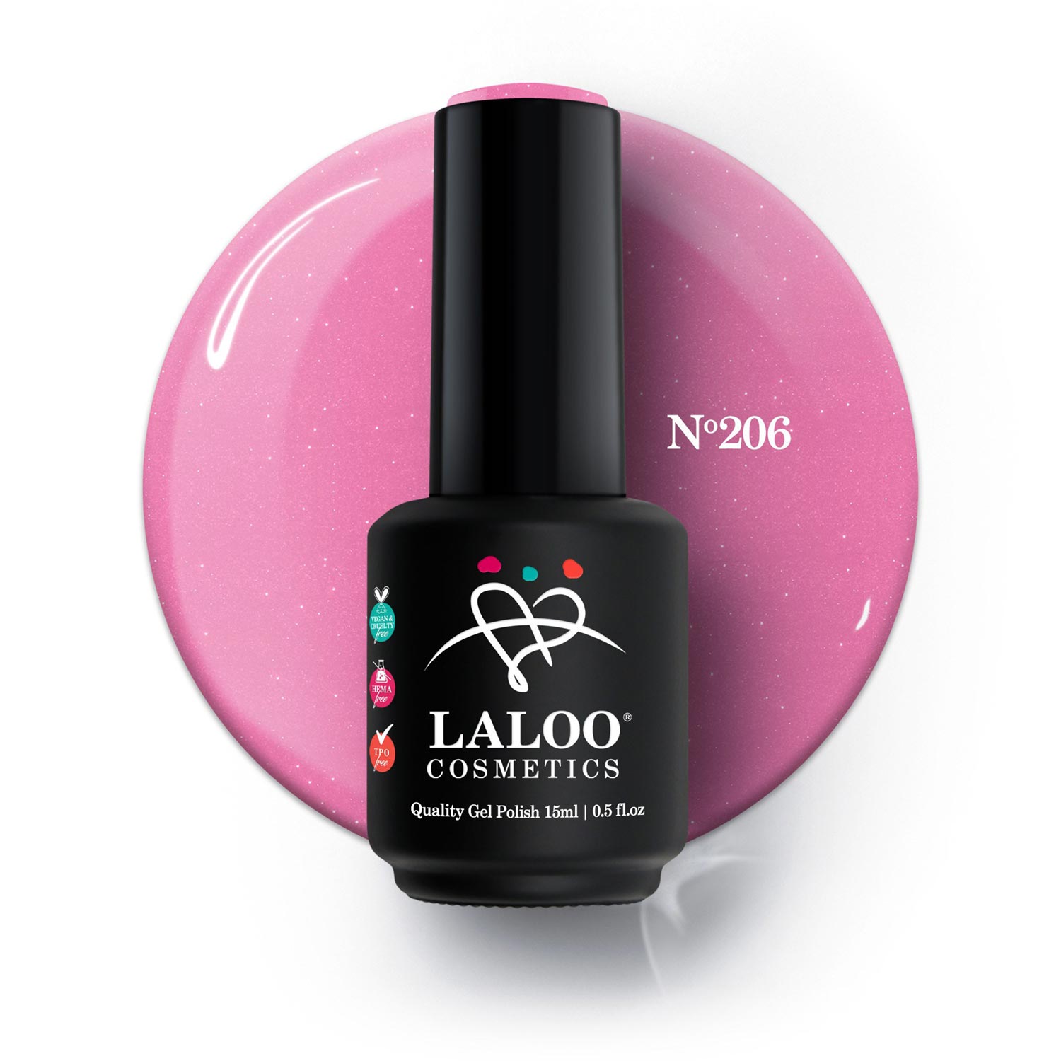 Νο.206 Ροζ σκούρο με shimmer | Ημιμόνιμο Βερνίκι 15ml