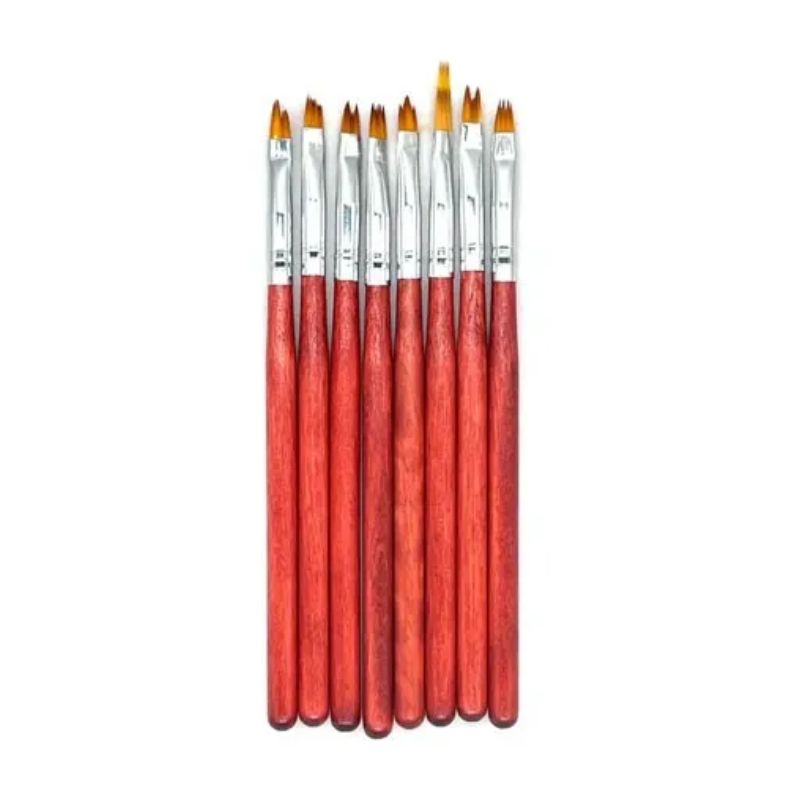 Σετ Πινέλα Νυχιών Ξύλινη Λαβή Nail Art – 8τμχ